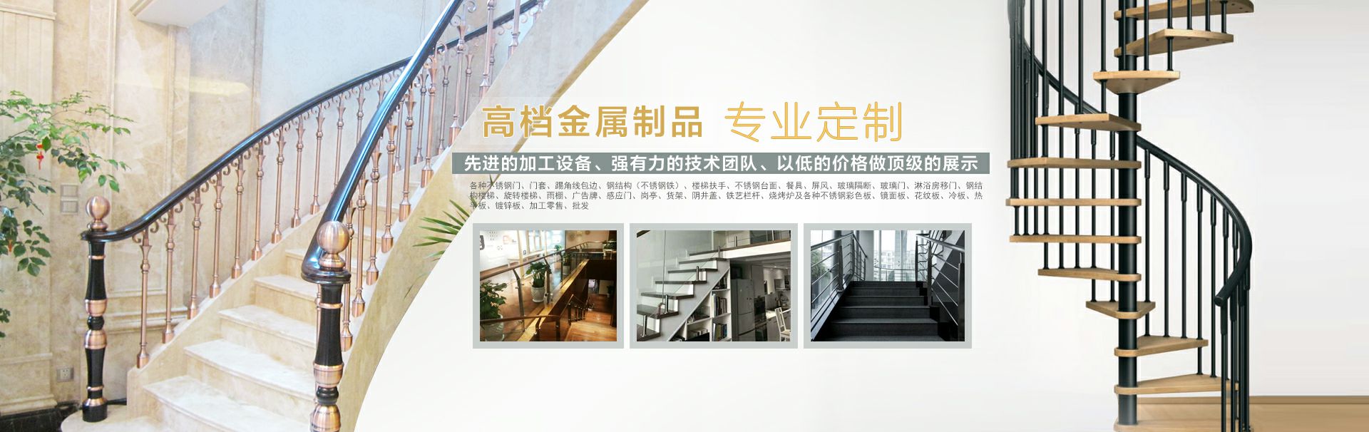 产品范围:各种不锈钢门、门套、踢角线包边、钢结构(不锈钢铁)、楼梯扶手、不锈钢台面、屏风、玻璃隔断、玻璃门、钢结构楼梯、雨棚、感应门、岗亭、阴井盖、及各种不锈钢彩色板、镜面板、花纹板、冷板、热平板、镀锌板、加工零售、批发。