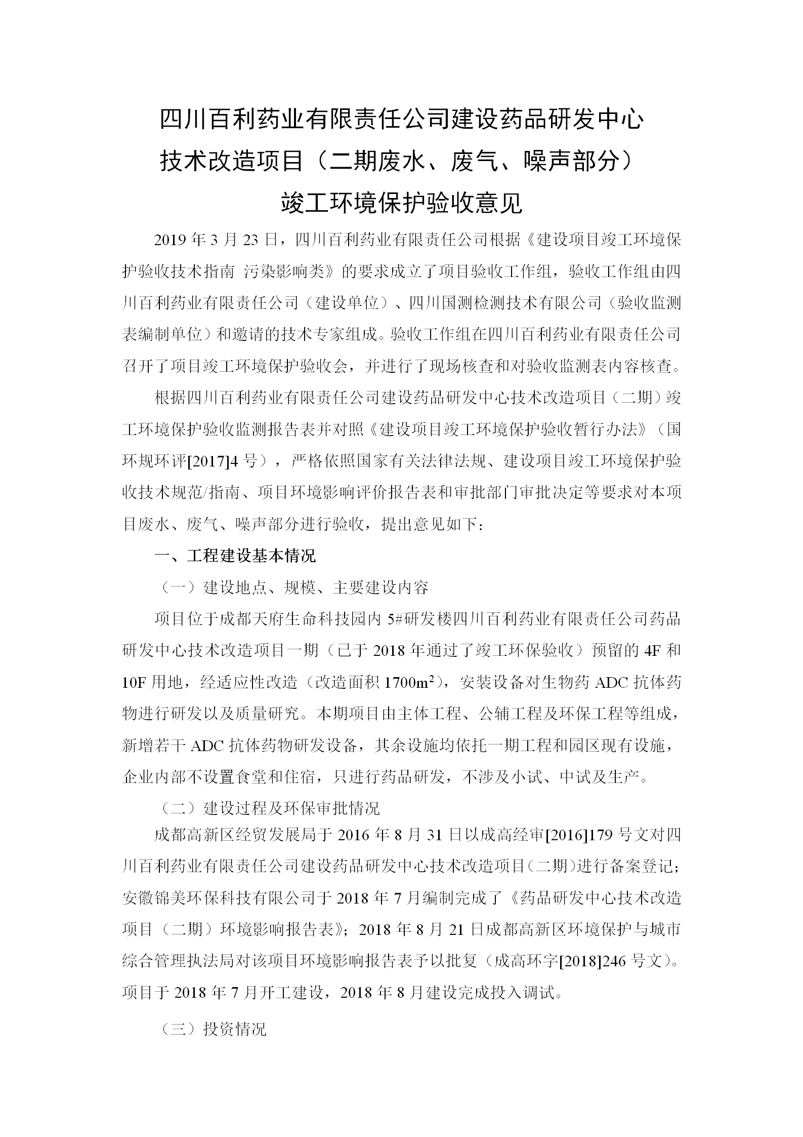 根据《国务院关于建设项目竣工环境保护管理条例的决定》以及环保部《建设项目竣工环境保护验收暂行办法》的公告(国环规环评[2017]4号)现将《四川MK体育·「中国」官方网站-MK SPORTS有限责任公司药品研发中心技术改造项目(二期)竣工环保验收监测报告》及验收意见公示如下: